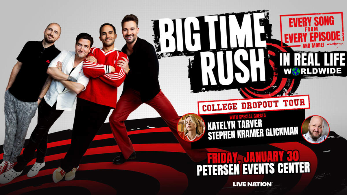 Big Time Rush is getting their PhD in performance - hitting the stage with the same energy, humor, and charm that made them fan favorites from their Nickelodeon days, will revisit their favorite moments from the show, plus many more surprises. Katelyn Tarver and Stephen Kramer Glickman, also known as Jo and Gustavo on the show, will be joining the band as support, making for an epic reunion.