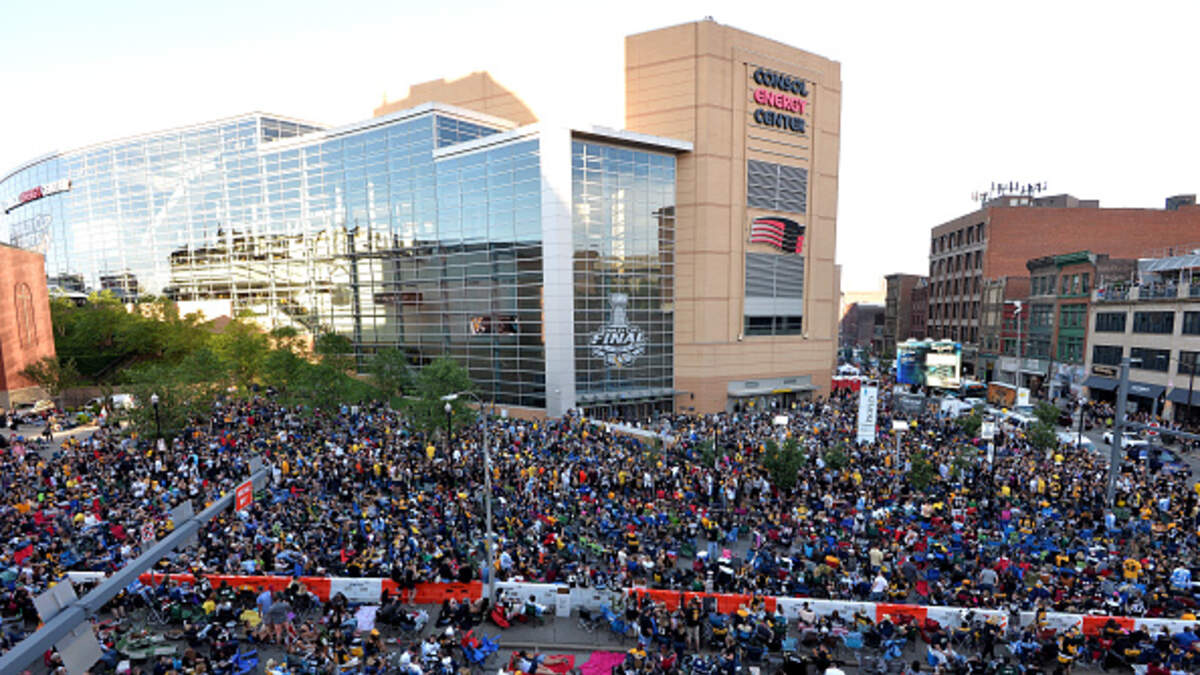 The screen will be set up outside the Peoples Gate at PPG Paints Arena, just like last season (and they won the Cup last season so.....)